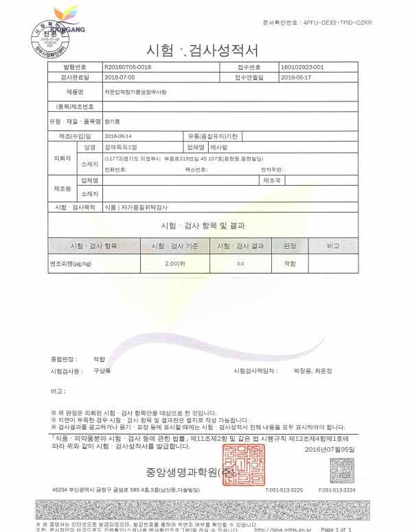 참기름 | 6월 국산 참기름 품질검사 시험성적서 페이지 정보 작성자 깨사랑 작성일16-07-21 16:29 조회1,742회 댓글0건 관련링크 이전글 다음글 검색 목록 본문 6월 국산 참기름 품질검사 시험성적서 댓글목록 등록된 댓글이 없습니다. 이전글 다음글 검색 목록